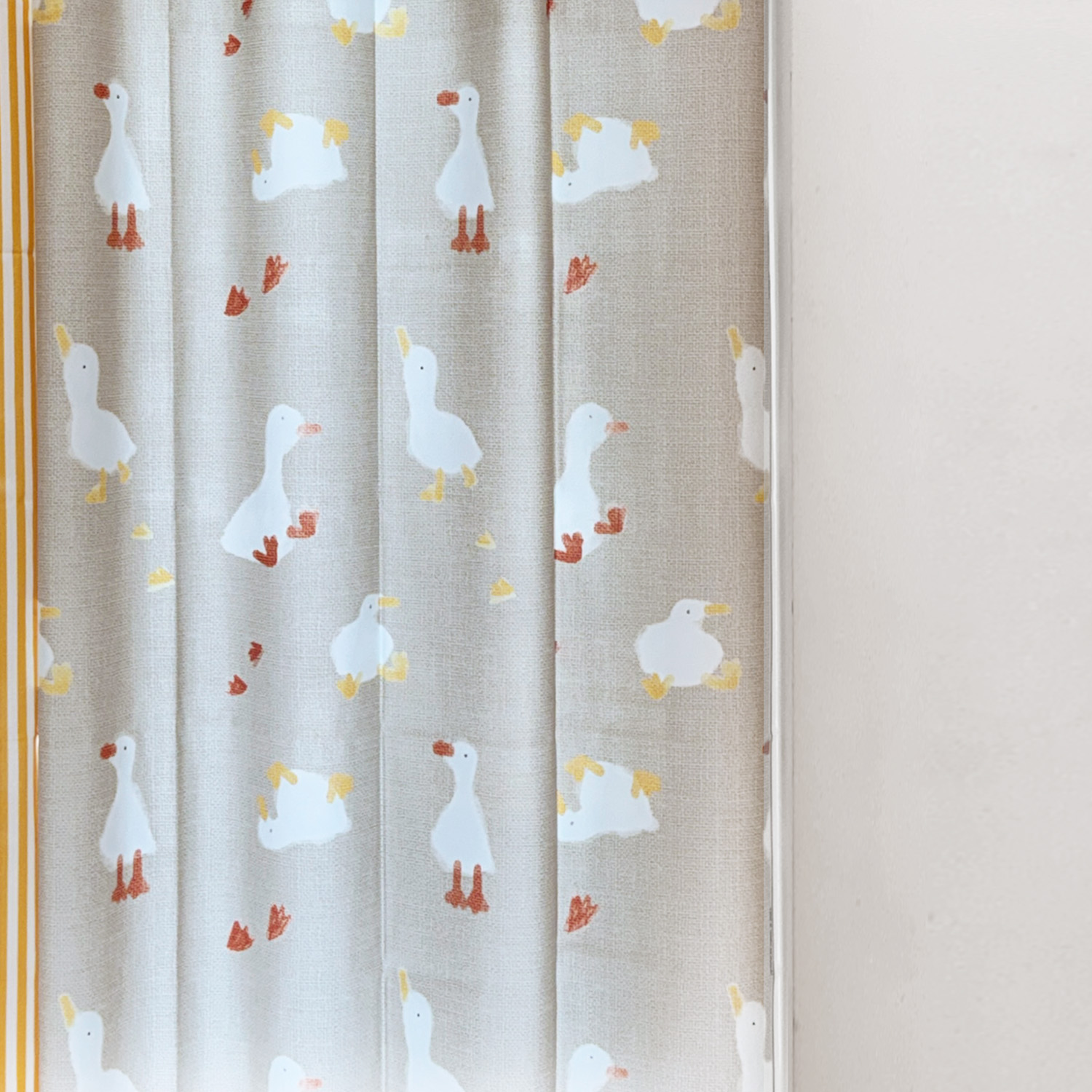 뒤뚱뒤뚱 아기 오리들을 커튼에 그려냈어요. 차분한 베이지 바탕에 빅포인트 올오버 패턴으로 스트라이프 커튼과 함께 스타일링 하면 공간을 특별하게 연출하실 수 있습니다.